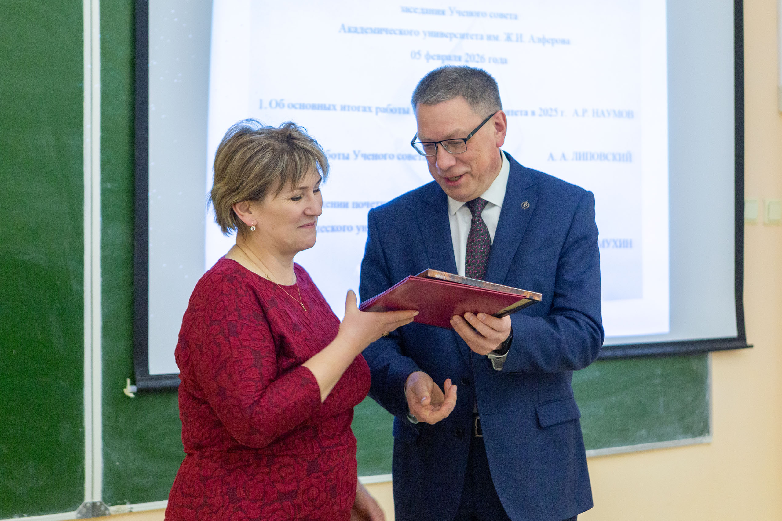 Проректор по науке Иван Мухин представил кандидатуру для присвоения почётного звания «Почётный доктор Академического университета имени Ж. И. Алфёрова». Ответственный секретарь Учёного совета Александр Липовский представил план работы Совета на 2026 год.